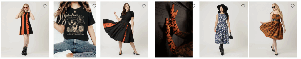 Unique Vintage nails the balance of nostalgia and novelty. Their Halloween clothing collections blend retro-inspired silhouettes with playful, spooky details, making them perfect for themed parties, pumpkin patch outings, or simply living your witchy best life.