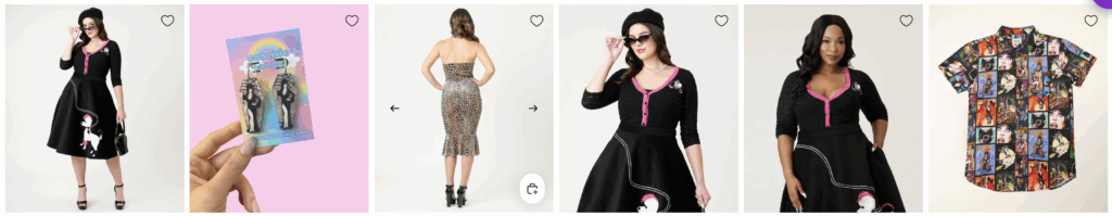 Not ready to commit to full Mistress of the Dark energy? Unique Vintage’s Creepy Collection is your one-stop shop for all things eerie and fun. Think cozy sweaters adorned with pumpkins and skeletons, twirl-worthy skirts patterned with black cats, and retro accessories that add just the right amount of spooky flair to your everyday outfits. These are the perfect pieces to wear all October long, and let’s be honest, spooky season doesn’t have to end on November 1st.