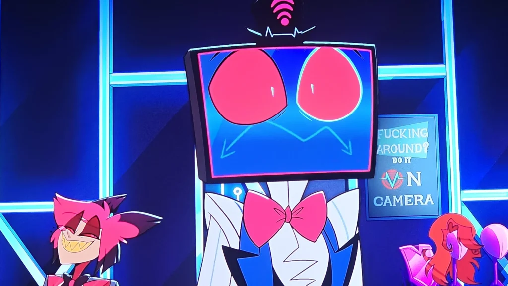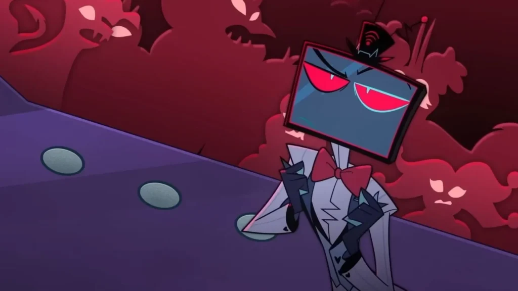 However, once it is revealed that Velvette (Lilli Cooper) and Alastor were in the room listening, Vox switches immediately. It plays right into Alastor’s hands, as his comments about Vox being weak last episode have clearly gotten to him.